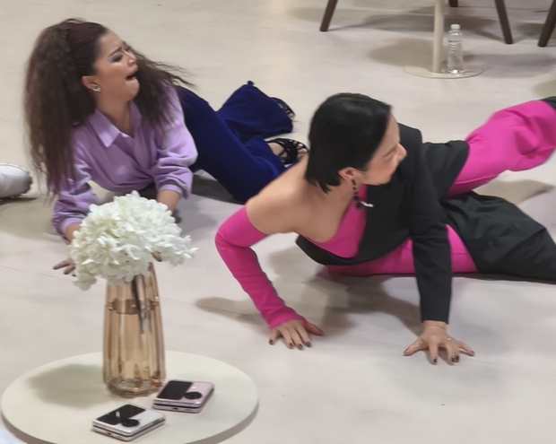 Ngoài ra, khoảnh khắc ngủ quên trời đất của Yến Trang trong hậu trường cũng gây chú ý. Đặc biệt, chị đại Mỹ Linh gây bất ngờ khi 'xả hình tượng' vì màn ''cười bò" ra sàn cùng Thanh Ngọc. Đây là khoảnh khắc vô cùng hiếm thấy của Diva Mỹ Linh.