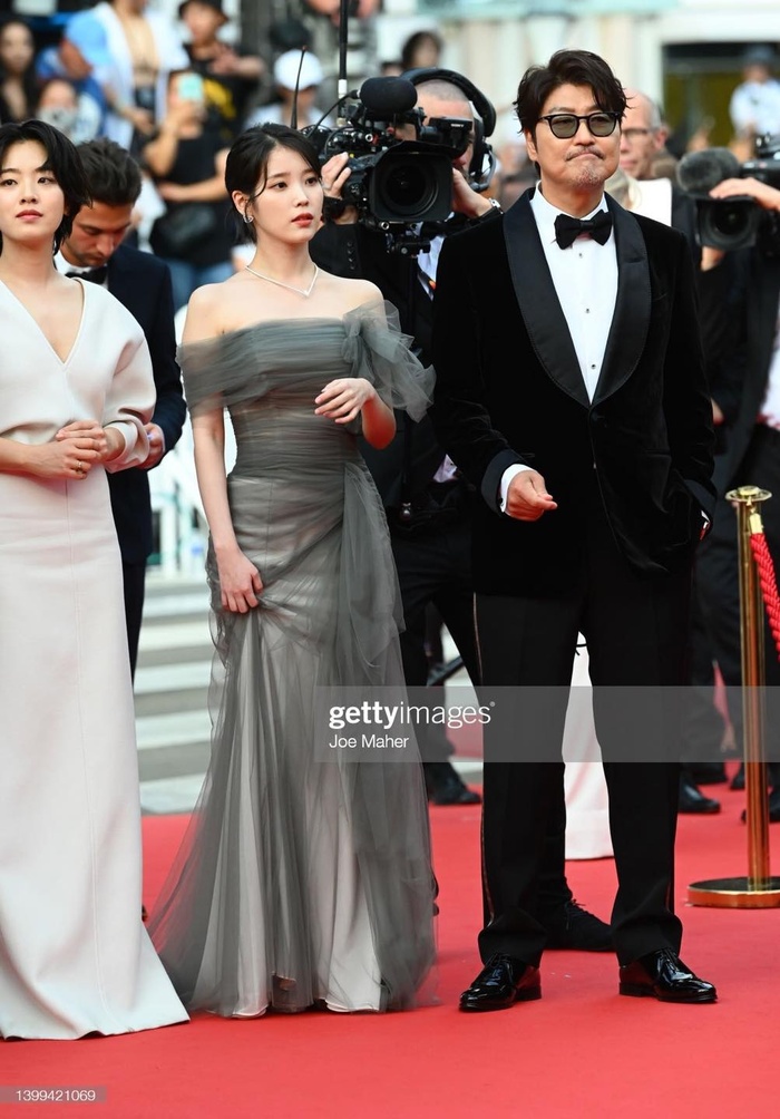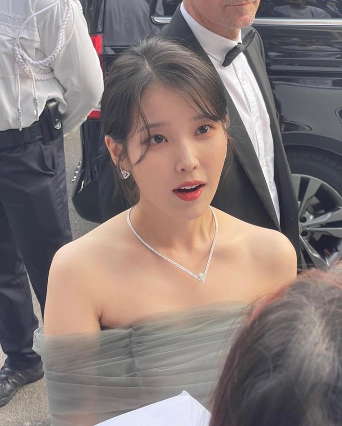 Lần đầu tiên sải bước trên thảm đỏ tại Liên hoan phim Cannes 2022, IU khiến dân tình mê mẩn vì nhan sắc xinh đẹp của mình. Xuất hiện trong sự kiện này, nữ diễn viên diện một bộ váy trễ vai màu xám tôn trọn vẻ đẹp thanh lịch, trong trẻo. Vẻ đẹp tựa nữ thần của sao nữ Broker đã nhận được vô số lời tán thưởng của báo chí quốc tế.