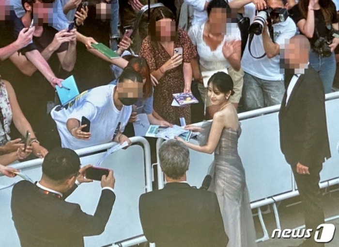 Ngoài ra, khi đang bước trên thảm đỏ, IU đã tiến đến chỗ người hâm mộ của mình để chụp ảnh và ký tặng. Hành động thân thiện này của sao nữ Broker đã chiếm trọn spotlight trên thảm đỏ Liên hoan phim Cannes 2022 sáng nay.