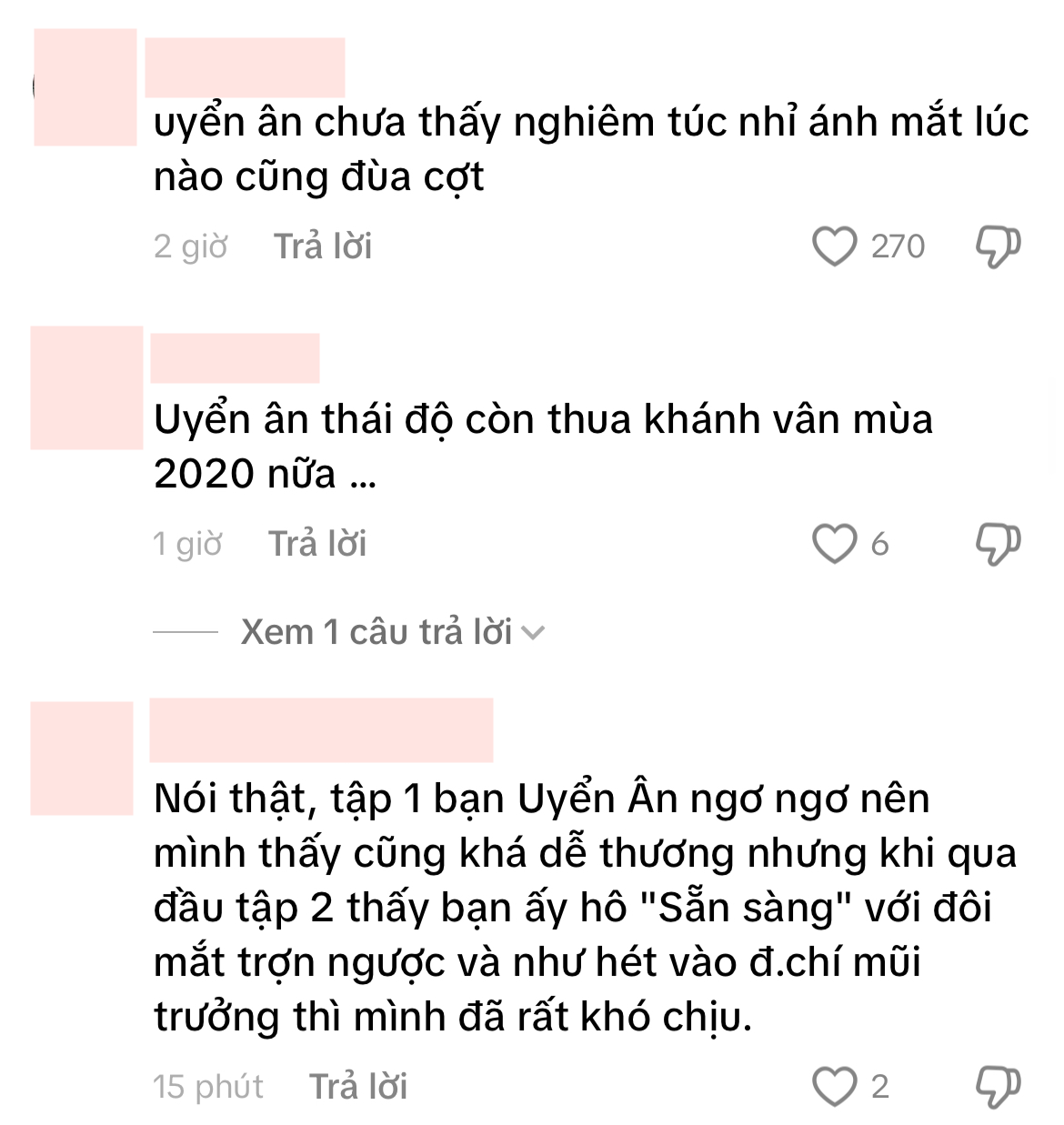 Yêu cầu của Uyển Ân khiến khán giả, đặc biệt là những người từng sinh hoạt trong môi trường quân đội vô cùng bức xúc. Nhiều người cho rằng đây chính là hành động thể hiện sự thiếu nghiêm túc, không trách nhiệm với vị trí được các đồng đội tin tưởng giao phó. Khán giả còn nhận ra từ những phần hô khẩu hiệu, thực hiện thử thách của Uyển Ân cũng thiếu sự chỉn chu, tập trung cao độ và kỷ luật.