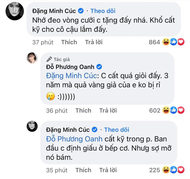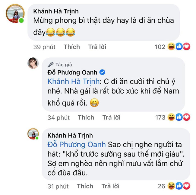 Tập phim vừa kết thúc, nữ chính Phương Oanh cũng đã không giấu được niềm vui mà tung luôn chiếc ảnh mình làm cô dâu xịn sò lên trang cá nhân. Trong hình ảnh này, Nam diện chiếc váy cô dâu bồng xòe cực "vương giả". Ngay lập tức, bức ảnh thu được lượng tương tác khủng. Bên dưới bài đăng của Phương Oanh hầu hết là những bình luận chúc mừng hạnh phúc, nô nức chờ ngày đi ăn cưới cô dâu chú rể.