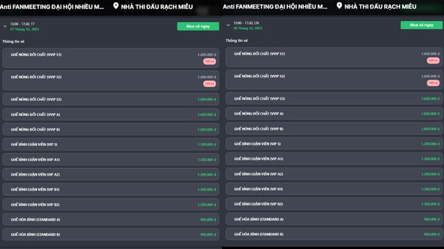 Tuy nhiên, khi kiểm tra trên hệ thống phân phối vé Ticketbox, tình trạng ế ẩm là có thật. Ngoại trừ một số ít hạng vé VVIP (ghế Nóng Đối Chất) đã được lấp đầy, phần lớn các hạng ghế còn lại vẫn còn trống chỗ.