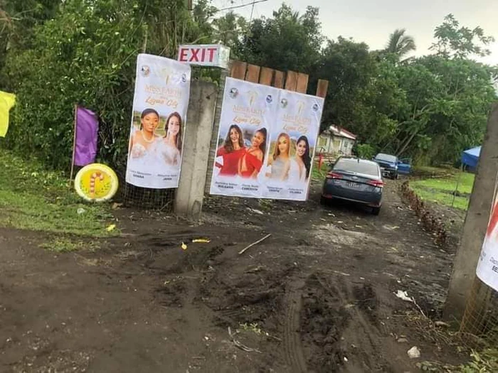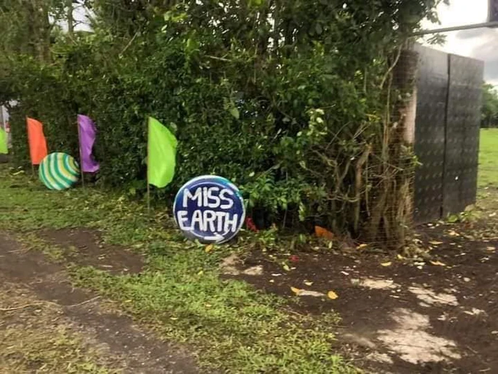 Theo đó, sân khấu biểu diễn của Miss Earth được tổ chức tại một bãi đất trông kém chỉn chu. Bên ngoài, ảnh các Hoa hậu được BTC dán trên chiếc cổng gỗ và cờ được cắm dọc lối đi. Biển hiệu "Miss Earth" cũng được sơn vẽ sơ sài trên một tấm gỗ tròn. Bàn đón tiếp chỉ là bộ bàn ghế nhỏ đặt trước cổng vào. Ngay lối vào sân khấu vẫn còn nhiều rác bẩn, điều này khiến nhiều người bức xúc, nhận xét khung cảnh và cách bài trí của Miss Earth quá sơ sài, nhếch nhác, thậm chí còn thua cả những show diễn hội chợ tổ chức ở sân làng.