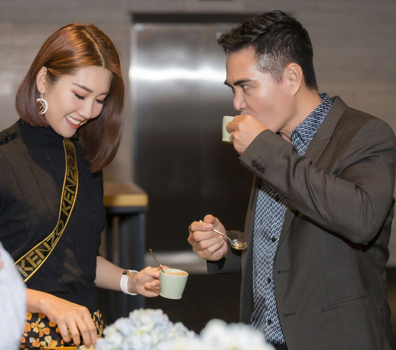 Thúy Ngân vui vẻ hội ngộ diễn viên Trung Dũng. Cả hai từng đóng cặp trong phim truyền hình đình đám Gạo nếp gạo tẻ nên có mối quan hệ thân thiết. Họ chụp ảnh, trò chuyện thân thiết cùng nhau. Trung Dũng cũng không ngại chăm sóc cho Thúy Ngân bằng nhiều hành động tình tứ.