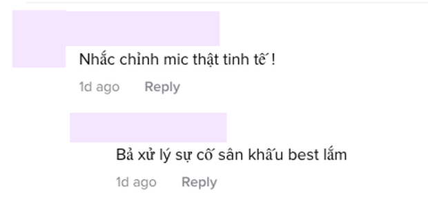 Theo đó, khi đang biểu diễn, do sự cố âm thanh của mic để tiếng khá bé và không có độ vang, nhiều người đã nhận ra việc Tóc Tiên phải cố gắng gằn giọng để không bị tiếng nhạc át. Với tình huống này, nữ ca sĩ đã có pha xử lý đầy tinh tế và được nhiều người khen ngợi.
