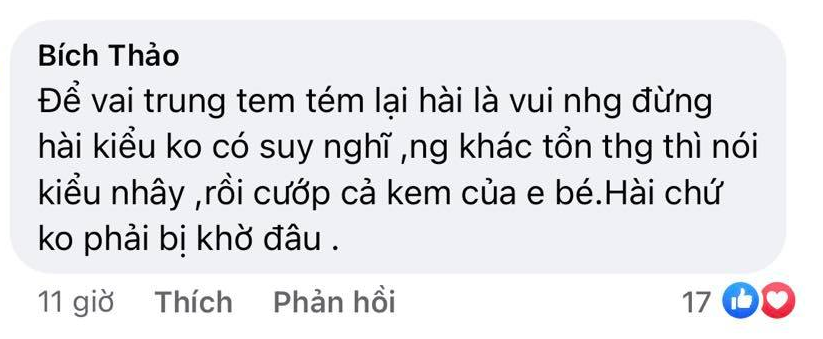 Chưa dừng lại ở đó, trong một tình tiết khác, Trung 'trâu' còn khiến người xem khó chịu khi cướp chiếc kem của một cậu bé trong bệnh viện. Nhiều người cho rằng chi tiết này thừa thãi, không những không gây hài mà còn khiến người xem khó chịu hơn.