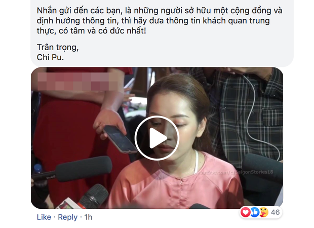 Chi Pu bức xúc cho rằng: "Câu dẫn bằng nội dung giật gân để tăng tương tác và mặc kệ nghệ sĩ có ôm về gạch đá hay hàng tấn lời miệt thị - như vậy có phải là tàn nhẫn quá không".