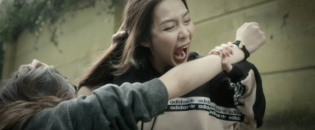 Vừa lúc này, Phương và Trâm Anh đi tới chứng kiến nên bắt cả 3 xin lỗi bà Cúc nhưng chúng lại lên giọng thách thức. Trâm Anh bị một thanh niên túm tóc, thấy vậy chị Phương lao tới can tạo nên cảnh ẩu đả hỗ loạn. Hà thấy mẹ bà các chị em đang bị đánh nên lập tức chạy đến dùng 'thiết đầu công' để 'hạ gục' một thanh niên. Trâm Anh dùng chiêu cắn một người khác. Trong khi đó, một cậu thanh niên lao tới đánh bà Cúc khiến Phương tức giận cho cậu ta một cục gạch vào đầu.