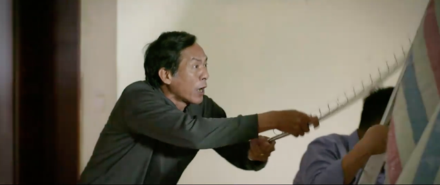 Hôm sau Hà lén lút gọi thợ sơn đến sơn lại phòng ngủ. Ông Toại nghe tiếng động lại tưởng trộm nên cầm gậy xông vào đánh khiến thùng sơn dội thẳng vào người ông. Hà cũng vừa hay về đến nhà và chạy vội vào phòng khiến hai bố con đều bị ngã.