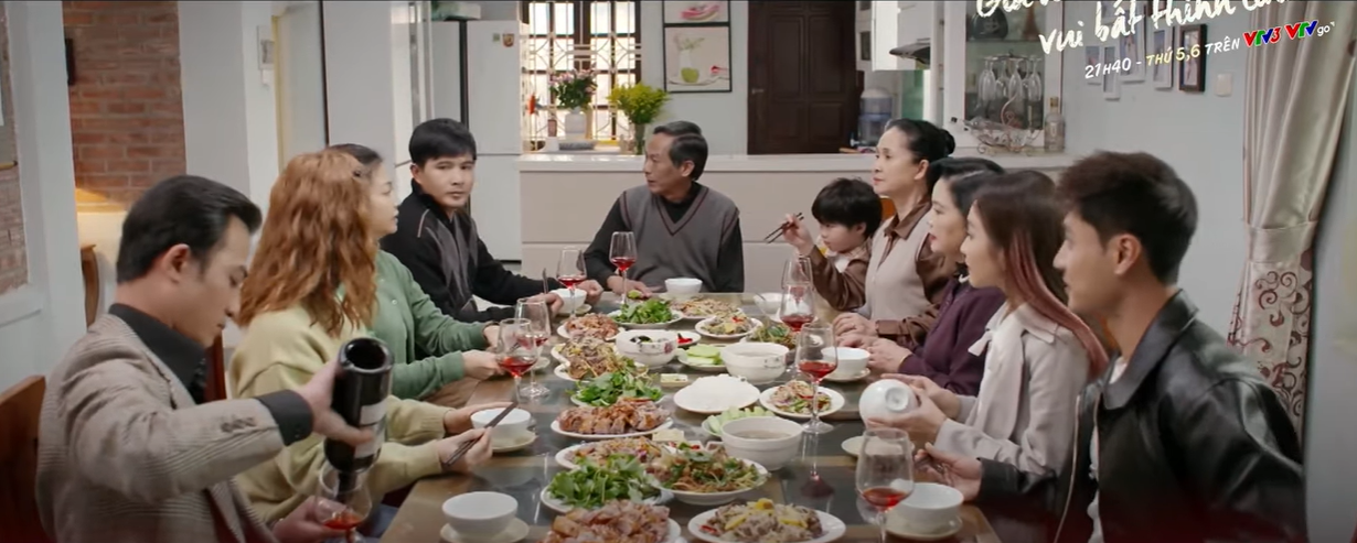 Sau đó, cả nhà đều họp mặt đông đủ, ăn uống vui vẻ cùng mẹ con Trâm Anh. Đúng lúc mọi người chuẩn bị nâng ly thì có tiếng chuông cổng. Phương định ra mở cửa nhưng Hà sai bé Long ra nói với khách rằng hôm nay nhà mình đang bận đón khách quý, không tiếp khách ngoài.