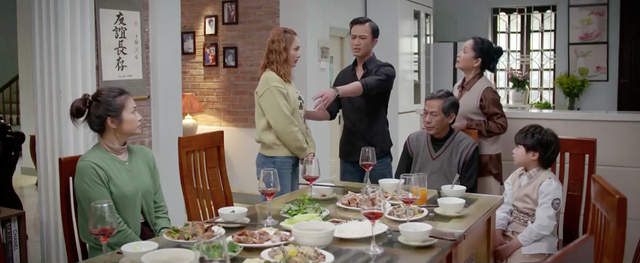 Không khí bỗng trở lên khó xử, mọi người đang không biết phải nói gì, phản ứng ra sao thì Danh đứng dậy chửi mắng vợ inh ỏi. Lan thấy vậy xin phép ra về. Bà Ngọc cũng hẹn dịp khác tới ăn cơm vì có lẽ lúc này gia đình bà Cúc cần không gian riêng. Bà Cúc tiễn bà Ngọc về, ái ngại xin lỗi vì sự cố. Bà cũng giải thích Lan là người yêu cũ của Danh nhưng đã chia tay hơn một năm và cả hai không liên lạc gì nữa. Danh đuổi theo Trâm Anh để xin lỗi và giải thích nhưng cô vẫn rất giận, không muốn nghe. Hóa ra, Thành giả vờ quát vợ để giải cứu cả nhà trước tình huống khó xử. Sau khi mọi người về hết, Thành lại ôm vợ dỗ dành. Bà Cúc thì vô cùng bực bội với Hà. Hà lại nước mắt ngắn dài lu loa nhận lỗi, làm đủ trò để mong mẹ chồng tha lỗi.