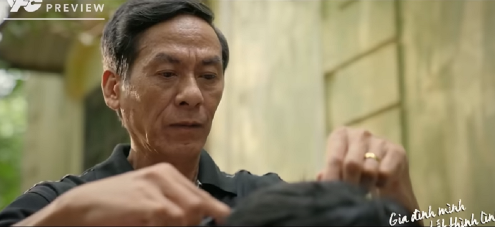 Công cố trấn an bố: "Chắc một phần do con dùng dầu gội không hợp ạ, bố cứ cắt hết đi, đằng nào sang tuần con cũng phẫu thuật, đỡ phải gội đầu''. Công gượng cười để bố phần nào bớt lo lắng, tiếp tục cắt đi mái tóc của mình.