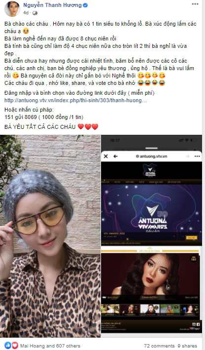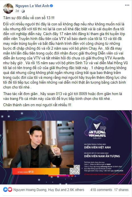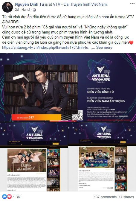 Ngoài việc kêu gọi cho mình, các diễn viên cũng quảng bá luôn cho bộ phim truyền hình mình đóng đang là đề cử ở hạng mục Phim truyền hình ấn tượng