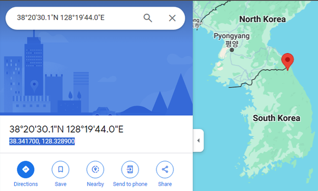 “Con cáo cắn đứt eo hổ” và tọa độ 38.3417, 128.3289