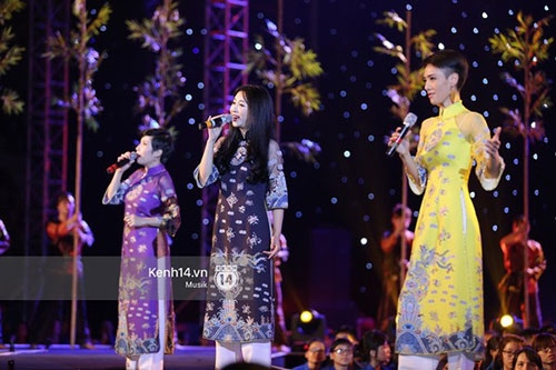 18/08/2015 18:49Hà Hồ, Mỹ Tâm diện áo dài thướt tha hát nhạc Cách mạng
