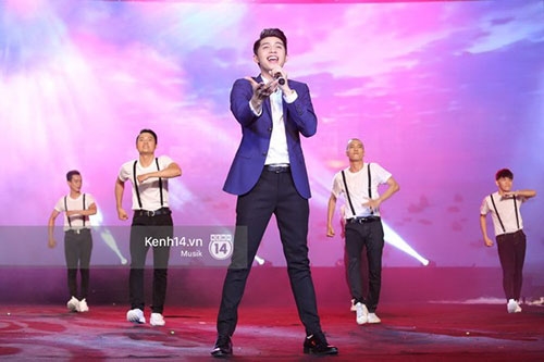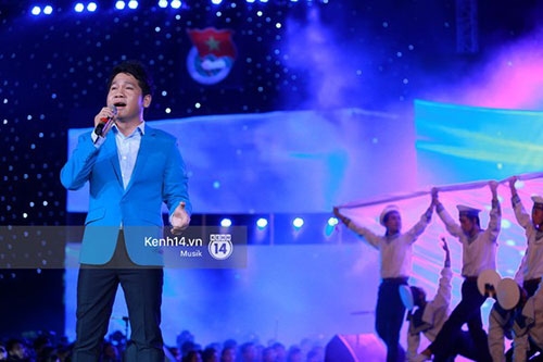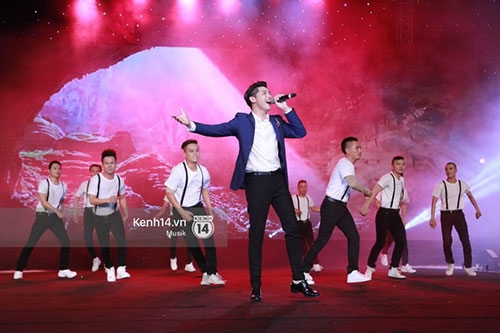 Noo Phước Thịnh hừng hực sức trẻ khi biểu diễn liên khúc gồm hai bài hát: "Xin chào Việt Nam" và "Hãy đến với con người Việt Nam tôi" |