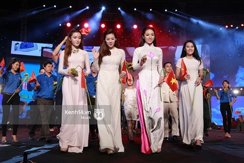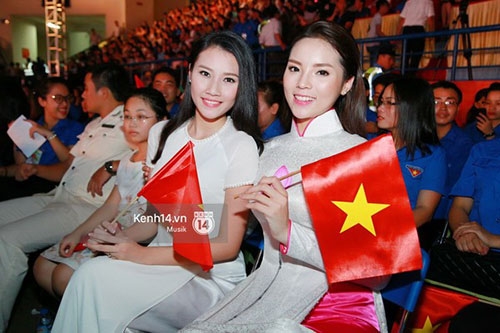 Hoa hậu Kỳ Duyên, Á hậu Tú Anh, Á hậu Huyền My... là những thanh niên tiêu biểu được mời lên sân khấu |