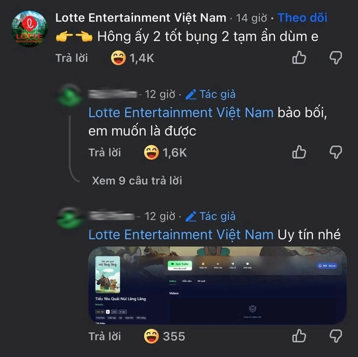 Cộng đồng mạng đang chia sẻ rầm rộ ảnh chụp màn hình cuộc đối thoại có một không hai giữa tài khoản chính thức của Lotte Cinema và một trang phim lậu. Chuyện là siêu phẩm hoạt hình Tiểu yêu quái núi Lãng Lãng sắp được khởi chiếu chính thức tại Việt Nam vào ngày 23/1 tới, nhưng bản vietsub lậu đã "tràn lan" từ một tháng trước.