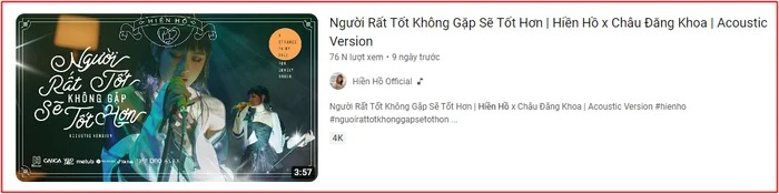 Cụ thể, Hiền Hồ đã cho ra mắt một phiên bản mới cho ca khúc từng ra mắt cách đây hơn 1 tháng, tuy nhiên khi nhìn vào lượt xem chắc chắn nhiều người sẽ vô cùng bất ngờ. Sau gần 10 ngày ra mắt, phiên bản ca khúc này chỉ đạt được 76 nghìn lượt xem, một con số cực kỳ thấp so với loạt hit trước đây của Hiền Hồ.