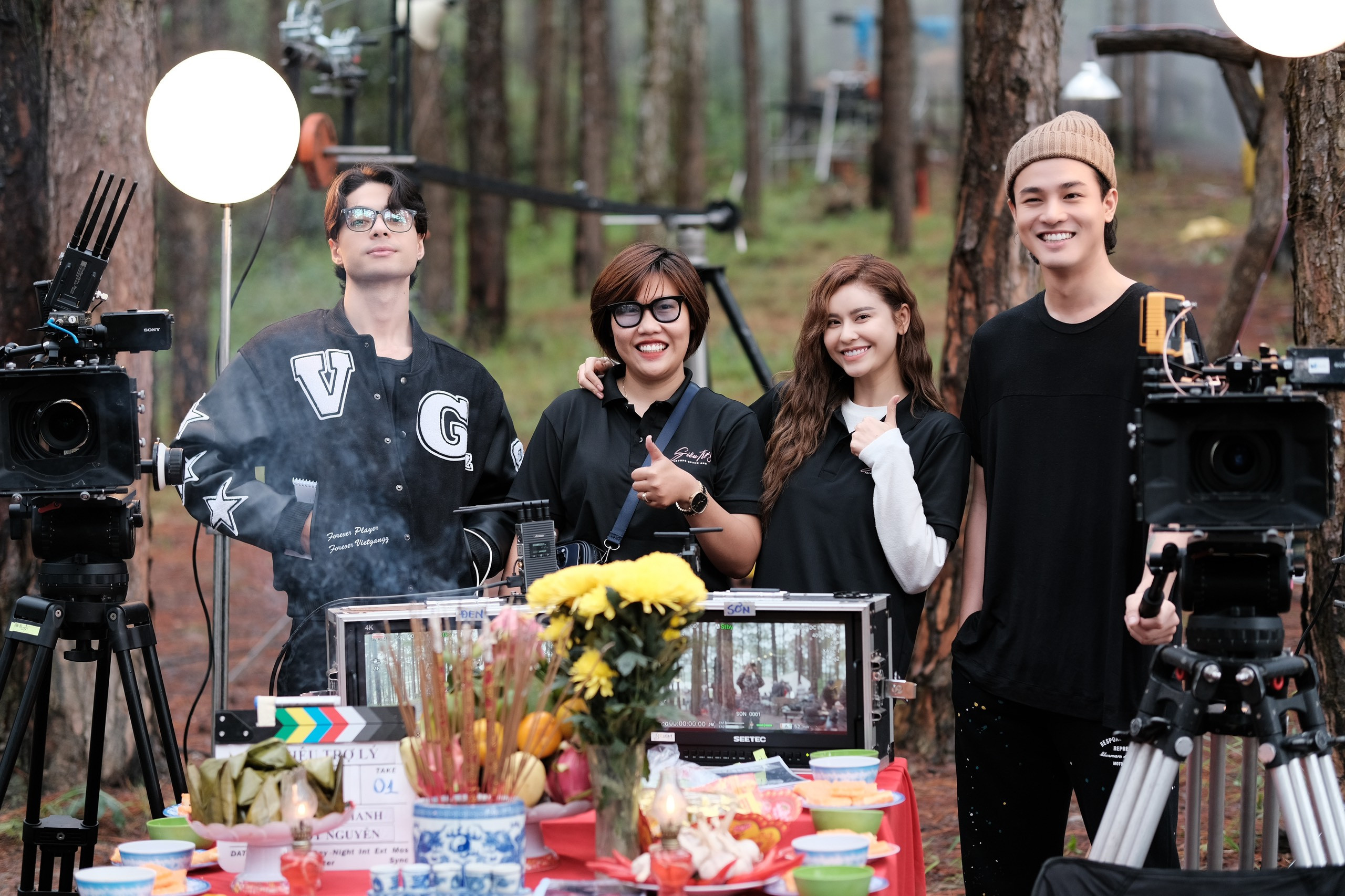 Hai diễn viên chính trước ống kính diễn xuất ăn ý, nhập vai. Giang Thanh vừa hô "Cắt", họ liền quay sang trêu chọc nhau vui vẻ, thoải mái.