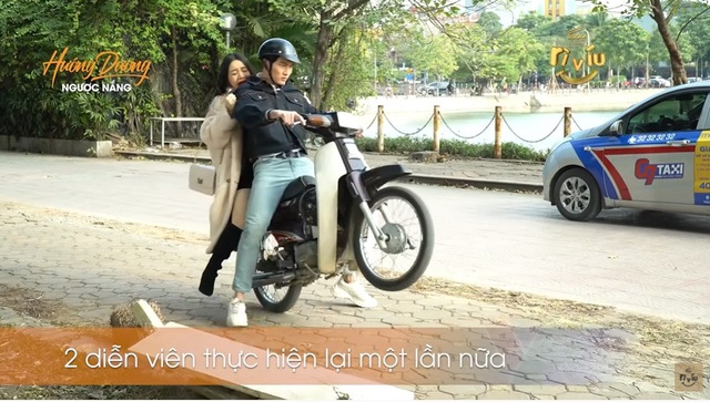 Hất Ngọc ra không được, Trí tức mình bốc đầu xe rồi phóng đi khiến Ngọc sợ hãi. Tuy nhiên, ban đầu trong kịch bản chỉ có cảnh Ngọc nhảy lên xe máy Trí rồi đòi bám càng theo. Thế nhưng, Đình Tú đã nghĩ ra thêm tình tiết là Trí tức giận bốc đầu xe máy khiến Ngọc suýt ngã ngữa. Mặc dù diễn rất ăn ý nhưng cảnh quay này cặp đôi đã phải quay lại 3 lần.