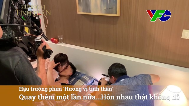 Dù nụ hôn đã hoàn hảo nhưng hai diễn viên vẫn phải tiếp tục diễn lại để lấy góc máy khác. Sau mỗi lần quay, cả Phương Oanh và Mạnh Trường đều bật cười vui vẻ. Đặc biệt Phương Oanh cười nhiều đến mức Mạnh Trường phải nhắc: 'Bình tĩnh đi'.
