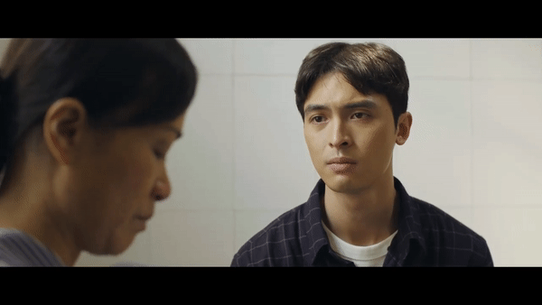 Không thể thuyết phục mẹ bằng lời nói, Phan đành quỳ xuống cầu xin: 'Con xin mẹ. Mẹ cho con cứu mẹ lần này thôi. Con xin mẹ đấy. Con xin mẹ mà'. Đến lúc này, mẹ Phan chỉ biết ôm cậu con trai hiếu thảo khóc nức nở.