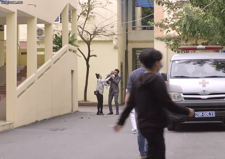 Bộ mặt của Bình còn lộ rõ hơn khi Phan bắt gặp anh đưa vợ con vào viện thăm khám. Phan nhanh tay chụp lại cảnh này cho My xem.