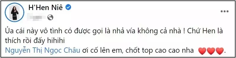 Theo đó, người này để lại bình luận cho rằng, nếu Ngọc Châu vào Top 3 mùa giải năm nay thì H’Hen Niê sẽ hết thời, không còn chỗ đứng trong showbiz: "Rồi Hen sắp tàng hình bay màu rồi, Châu mà vào được Top 3 thì Hen chỉ có bị đá văng khỏi TP.HCM về quê thôi. Rồi truyền thông và công việc cũng như hợp đồng dự án cũng như đại sứ sàn diễn,… sẽ thuộc về Châu hết, từ đó Hen sẽ không còn chỗ đứng nào và rồi lặng lẽ về núi. Sắp có bộ phim hay để coi rồi đó và Hen không còn giá trị như xưa".