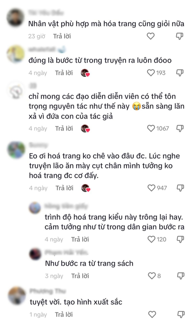 Khán giả để lại rất nhiều bình luận khen ngợi tạo hình của dàn diễn viên trong phim, đặc biệt là nghệ sĩ Quý Đôn: