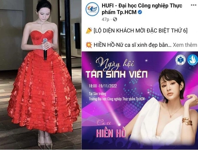 Theo tìm hiểu, trong ngày hội tân sinh viên của Trường ĐH Công nghiệp thực phẩm TP.HCM diễn ra ngày 19.11, Hiền Hồ đã bị gạch tên vào giờ chót. Trong khi những cái tên đình đám khác như: ST Sơn Thạch, Phạm Đình Thái Ngân, nhóm P336, rapper Kenji... vẫn góp mặt như kế hoạch ban đầu. Đại diện của trường cũng xác nhận thông tin ngừng hợp đồng mời Hiền Hồ trước khi sự kiện diễn ra.