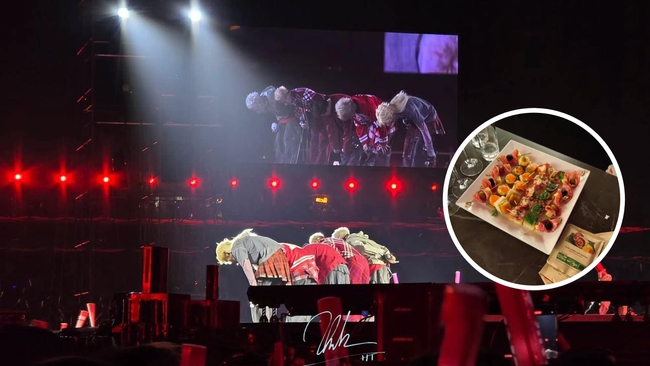 Và mới đây, những hình ảnh về bữa ăn tại khu XVIP của concert Anh Trai Vượt Ngàn Chông Gai đang được khán giả lan truyền mạnh mẽ. Có thể thấy, những món ăn được chiêu đã đều vô cùng sang chảnh với những món như Canape bò Úc Tataki, bánh rau Mille Feuille, bánh pate choux,...