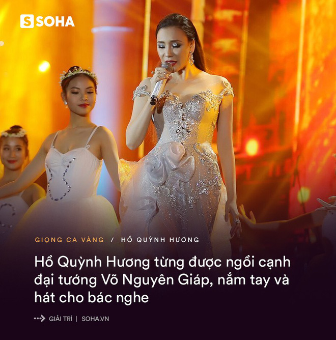 Và trên hết, Hồ Quỳnh Hương từng được ngồi cạnh đại tướng Võ Nguyên Giáp, nắm tay và hát cho bác nghe. Khoảnh khắc tuyệt diệu này là vô giá trong đời người ca sĩ, nó đã khiến cô bật khóc.
