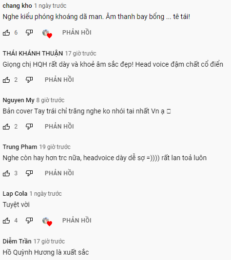 Đoạn clip sau khi đăng tải lên MXH đã thu hút hàng ngàn bình luận khen ngợi. Nhiều người thậm chí 'đòi' Hồ Quỳnh Hương nhanh chóng ra 'bản full' để nghe cho 'đã cái nư'.