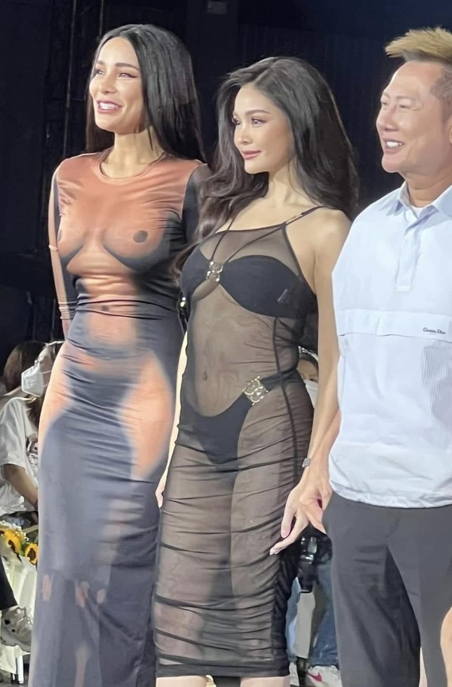 Coco Arayha Suparurk diện bộ váy loang màu bó sát khoe đường cong. Tuy nhiên, phần thân trên của bộ váy có thiết kế lạ mắt, khiến nhiều người lầm tưởng cô đang bán nude trên sân khấu.