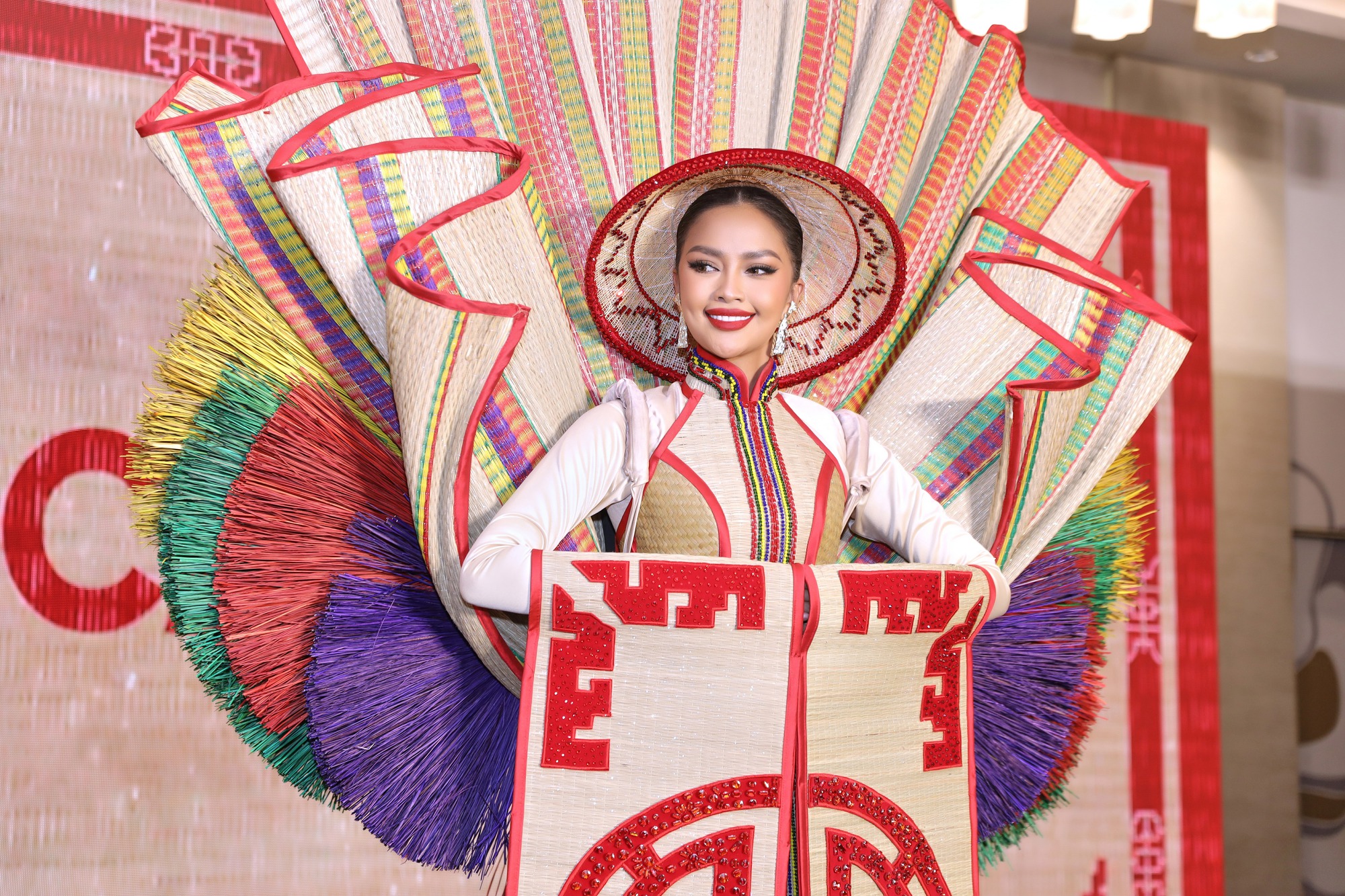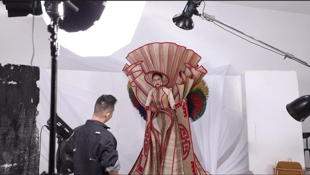 Ngọc Châu chia sẻ: "Đây là lần đầu tiên Châu được fit thử 100% bộ trang phục dân tộc, đúng cân nặng, đúng chiều dài và đầy đủ các chi tiết nên Châu khá hồi hộp". Vì trang phục khá nặng và cồng kềnh nên Ngọc Châu phải liên tục dùng sức để kiểm soát tốt cũng như thể hiện hết nét đẹp, sự độc đáo của bộ trang phục khi chụp ảnh. Đại diện Việt Nam hài hước chia sẻ việc mặc "Chiếu Cà Mau" như đi "tập tạ".