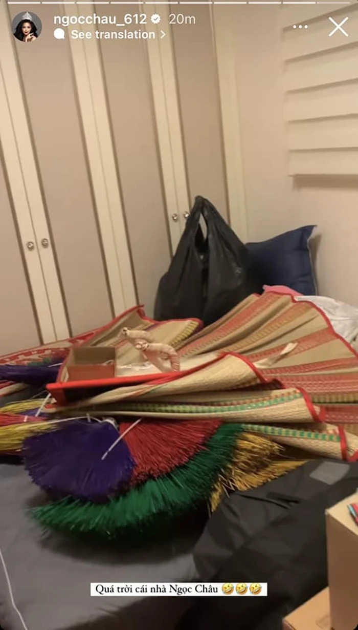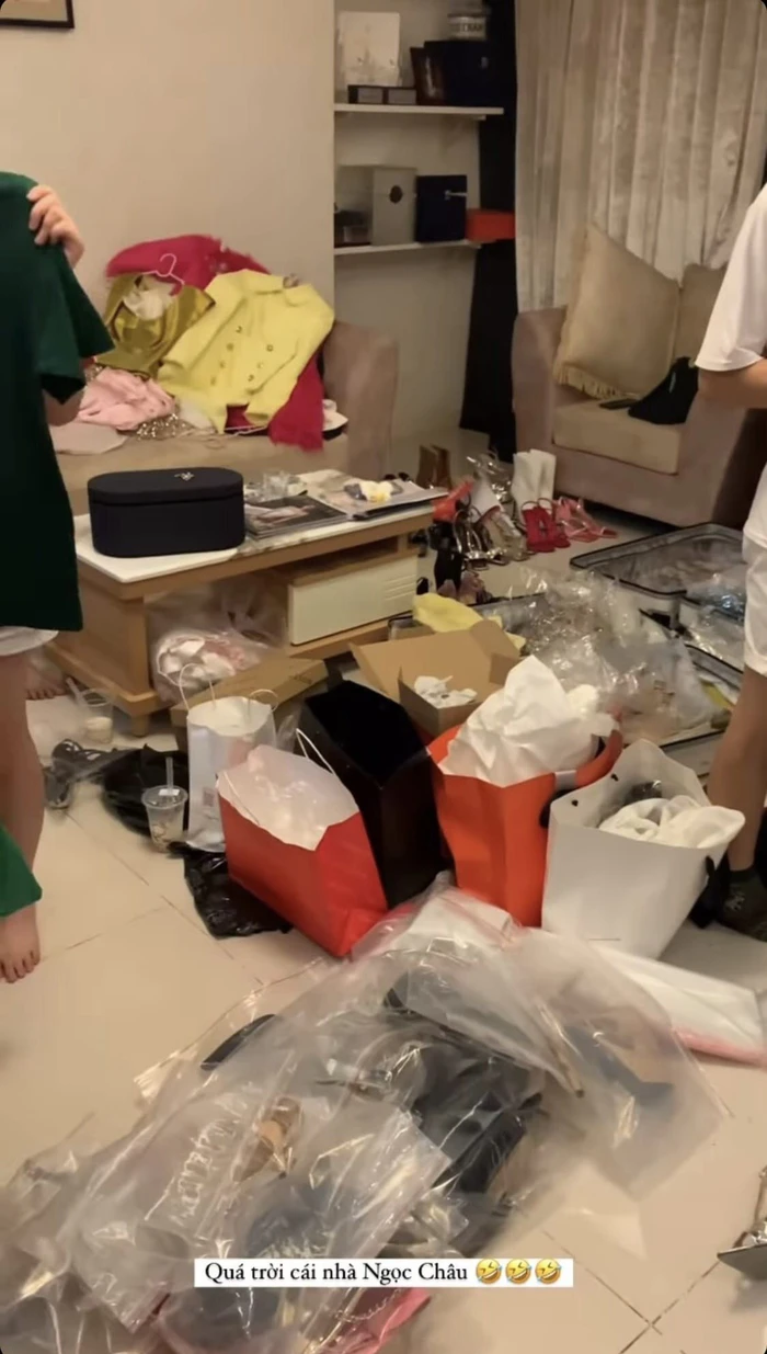 Ngọc Châu đã đăng tải story trên trang cá nhân, chia sẻ hình ảnh căn nhà "tràn ngập" quần áo, phụ kiện,... mà cô sẽ mang sang Mỹ.