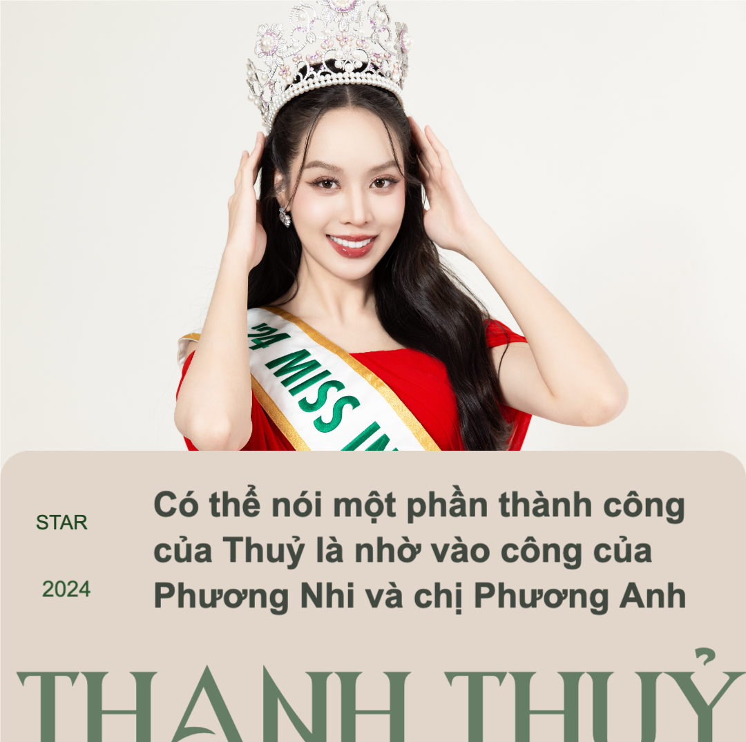 Tân Miss International 2024 tiết lộ đã được những đại diện trước đó của Việt Nam như Phương Nhi, Phương Anh âm thầm hỗ trợ rất nhiều. Thanh Thuỷ bộc bạch: "Thanh Thuỷ rất may mắn khi được chị Phương Anh, Phương Nhi hỗ trợ rất nhiều khi chuẩn bị lên đường đi thi. Đặc biệt, Phương Nhi còn soạn ra một cái 'cẩm nang' dài, chia sẻ những tips, chia ra từng phần, mỗi ngày nhớ ra gì thì Nhi đều gửi để Thuỷ đọc. Trong cả quá trình thi, dù là điều nhỏ nhất thì Phương Nhi cũng ghi lại cho Thuỷ. Có thể nói một phần thành công của Thuỷ là nhờ vào công của Phương Nhi và chị Phương Anh".