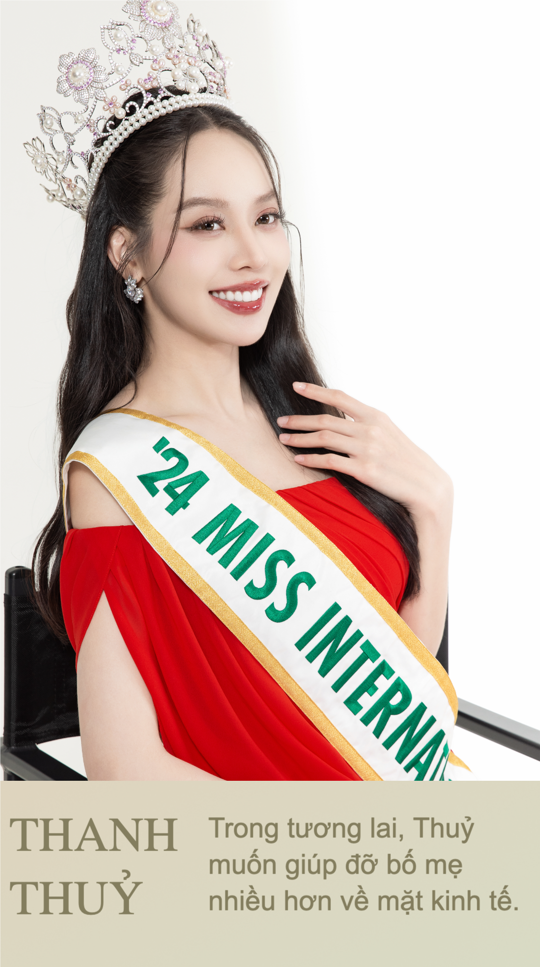 Thanh Thuỷ còn trải lòng về 2 lần đăng quang gây bão ở Hoa hậu Việt Nam và Hoa hậu Quốc Tế. Cô cho biết vào năm 2022, khi chiến thắng thì tên "Huỳnh Thị Thanh Thuỷ" vang lên, đó là niềm tự hào của cá nhân cô, sâu hơn là gia đình, họ hàng. Thế nhưng đến với Hoa hậu Quốc tế 2024, khi MC đọc "Việt Nam" là người chiến thắng, cô vỡ oà, hạnh phúc vì đem về thành tích cho đất nước, cho cộng đồng fan sắc đẹp.
