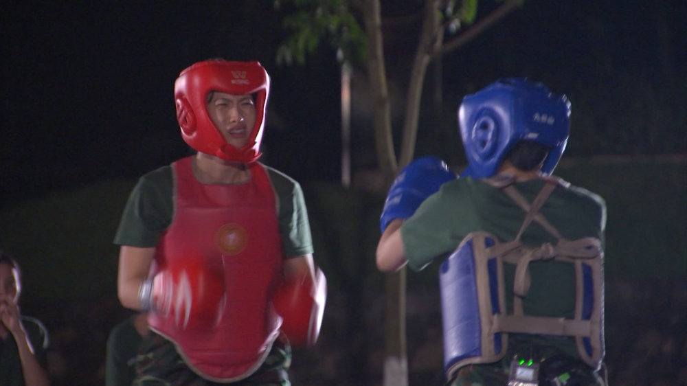 Cặp thi đấu đầu tiên là Thùy Tiên và Jun Vũ. Trước khi chính thức bước vào trận đấu, Thùy Tiên nhắn nhủ đối thủ: "Xin đừng đánh tôi". Jun Vũ cũng đáp lại nhẹ nhàng: "Tôi đánh nhẹ thôi". Thùy Tiên và Jun Vũ đều đã từng luyện tập boxing nên có thể nói cả hai đồng chí khá cân tài cân sức. Tuy nhiên chỉ sau 1 hiệp, Thùy Tiên bắt đầu đuối sức. Trước đó, nàng hậu đã bị chấn thương ở chân. Bước sang hiệp thứ 2 chưa đầy một phút, Thùy Tiên đã bị ngất xỉu khiến đồng đội ai nấy đều lo lắng. Cô đã được quân y cùng các đồng đội chăm sóc chu đáo. Chiến thắng mặc định thuộc về Jun Vũ.
