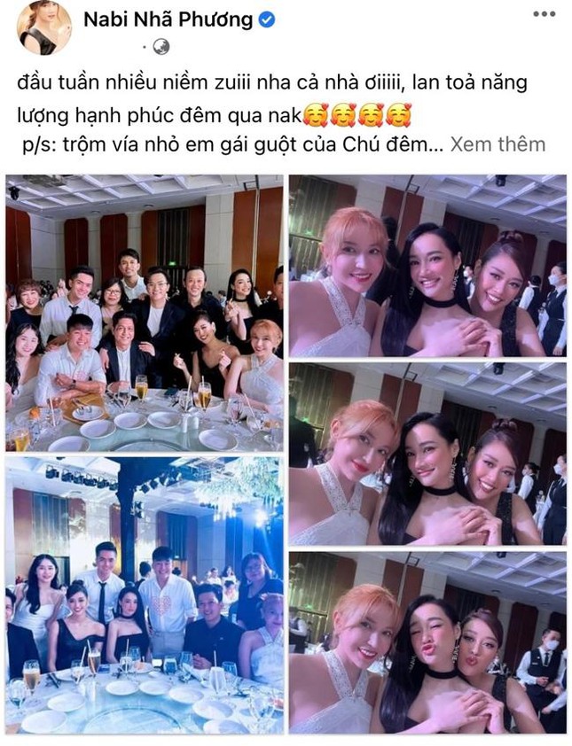 Trong khi đó, Nhã Phương - bà xã Trường Giang dường như không quan tâm đến 'nụ hôn thị phi' của chồng. Nữ diễn viên thoải mái khoe ảnh hai vợ chồng vui vẻ đi dự đám cưới Mạc Văn Khoa và Vy Pumpe vào ngày 5/6 vừa qua.