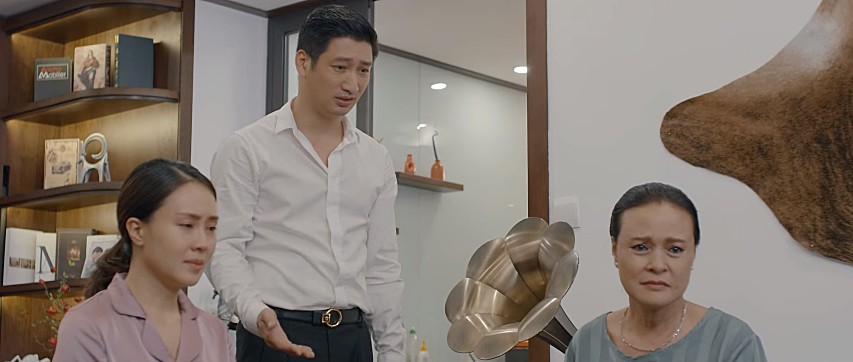 Nghe những lời này của Thái, Khuê uất ức và căm phẫn nhìn chồng, định thốt lên điều gì đó. Làm sao có thể không uất ức cho được khi công sức bấy lâu nay của cô đều bị đạp đổ? 10 năm Khuê đi làm dâu, tận tụy với gia đình nhà chồng, hy sinh cả tuổi trẻ, cuối cùng lại bị chồng quy tội "chỉ biết ăn rồi đẻ, đặt điều nói xấu".