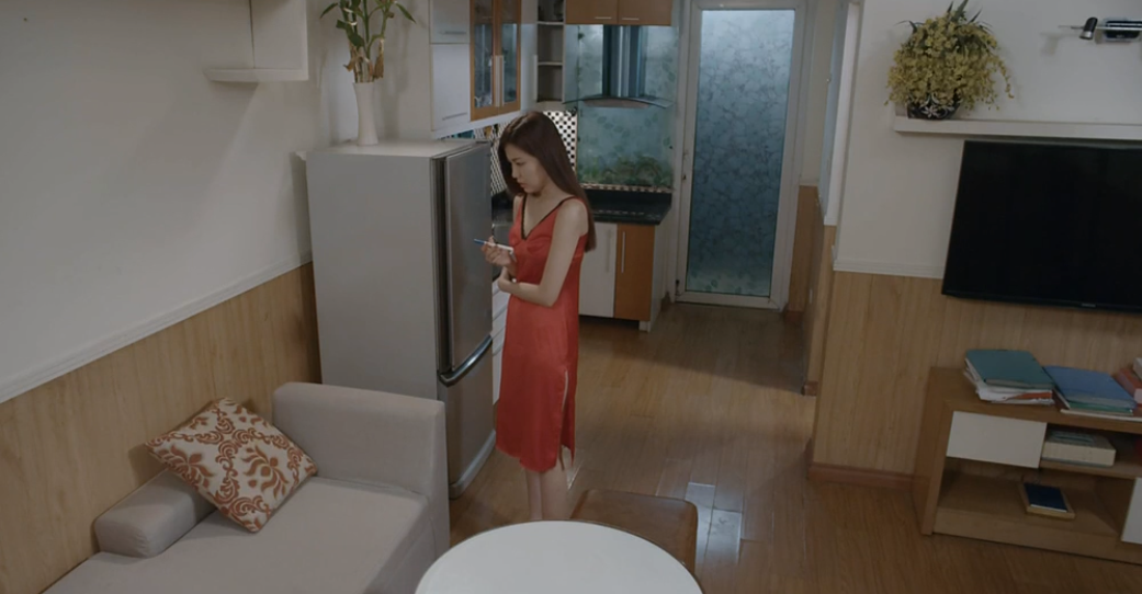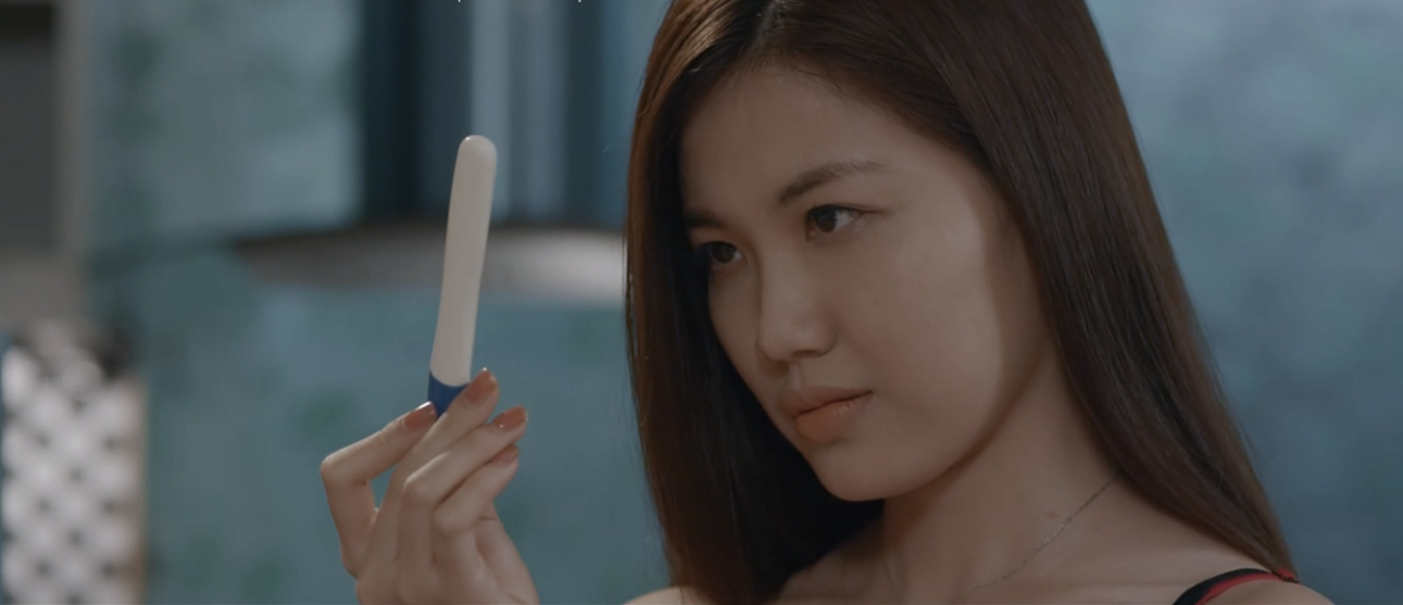 Nhìn que thử thai hiện 2 vạch rõ ràng, Trà vô cùng lo lắng và bắt đầu bày mưu tính kế. Cô nàng chợt nhớ lại cuộc trò chuyện với Giang ở quán bar lần trước và nở nụ cười nham hiểm.