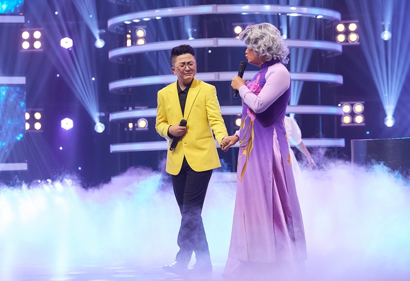 Giám khảo Đại Nghĩa và Hòa Minzy không quên nhận xét phần biểu diễn của Trịnh Tú Trung khi đã hóa thân vai người mẹ, tạo điều kiện cho bé Sỹ Luân tỏa sáng.