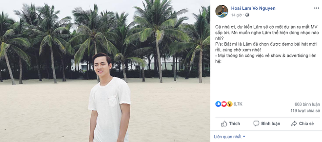 Sau gần 1 năm "mất tích" trên mạng xã hội, đầu tháng 6/2019, Hoài Lâm bất ngờ đăng thông tin tuyển trợ lý trên trang cá nhân. Anh cũng chia sẻ sản phẩm âm nhạc mới của người bạn thân.