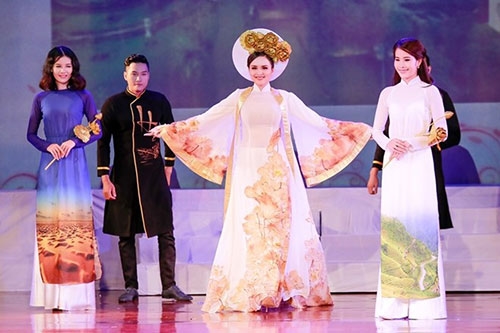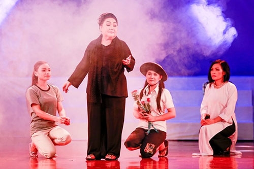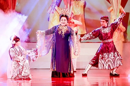Hoa hậu Diễm Hương trình diễn BST áo dài Hồn Việt của NTK Anh Kiệt. Live showThương lắm người ơi của NSND Ngọc Giàu tiếp tục có đêm diễn cuối vào tối 17/7 cũng tại rạp Công nhân (TP HCM). |