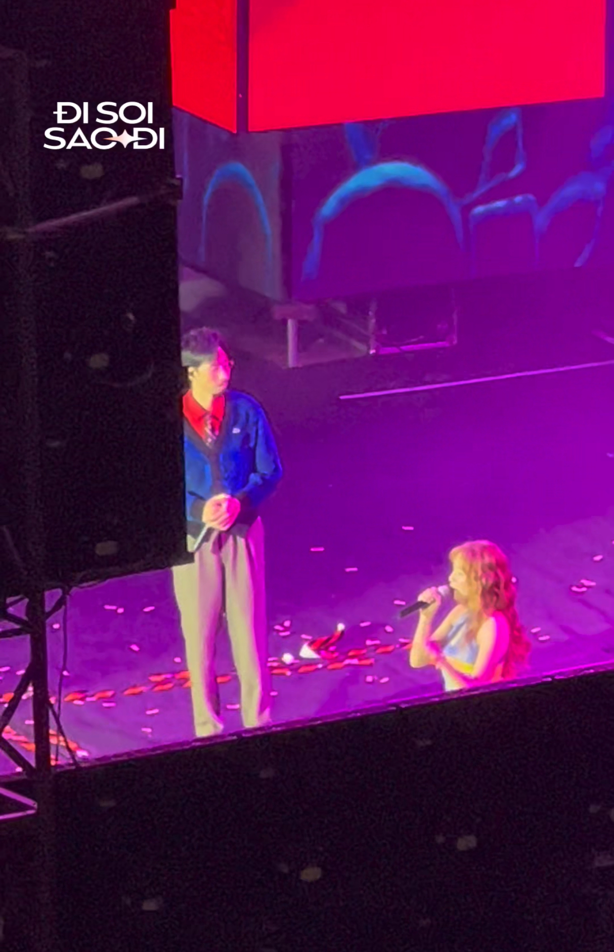Theo đó, ngay khi Đen Vâu vừa xuất hiện, Hoàng Thuỳ Linh đã cúi gập người 90 độ chào nam rapper. Sau khi kết thúc màn trình diễn chung, Hoàng Thùy Linh nán lại sân khấu để giao lưu cùng khán giả. Trong lúc cô chia sẻ về ca khúc và cảm xúc tham gia sự kiện, Đen Vâu giữ thái độ im lặng tuyệt đối, chăm chú lắng nghe mà không hề tương tác lại. Ánh mắt Đen nhìn Hoàng Thùy Linh đầy tập trung và dịu dàng, như một cách tôn trọng và ủng hộ người bạn đồng hành của mình.