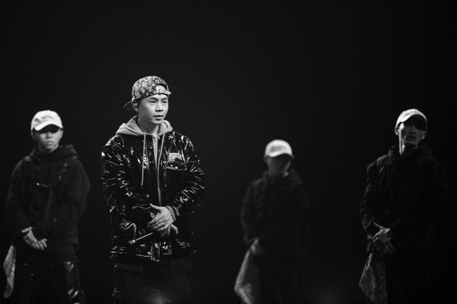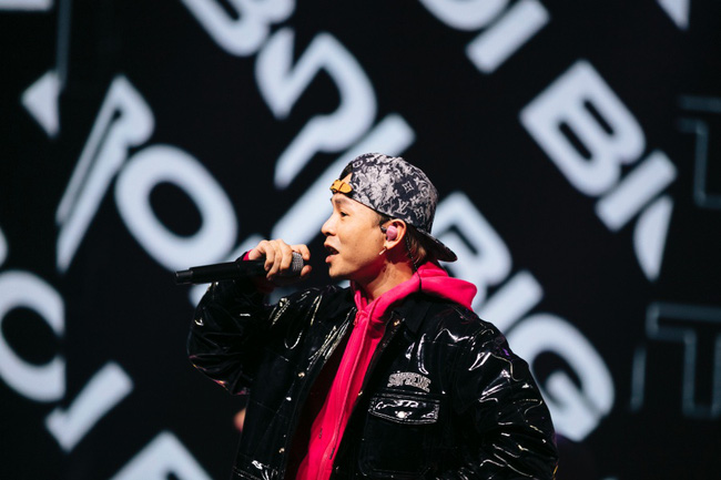 Không kém cạnh, Binz cũng dành tặng cho khán giả một bản hit đình đám trong năm qua. Trên sân khấu, chàng Rapper nổi bần bật và thu hút ánh nhìn với bộ trang phục màu hồng - đen cá tính.