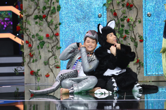 Quốc Nghiệp hóa thân thành chú khủng long hồng trả lời sai nội dung trong bài hát Giàn thiên lý đã xa. Anh chọn cánh cửa có câu trả lời sai và sói Hoàng Mèo xuất hiện. Cả hai tạo nên một pha rượt đuổi kịch tính trong Sàn Đấu Ngôi Sao, sói Hoàng Mèo thay vì rượt đuổi người chơi, anh lại bị khủng long Quốc Nghiệp đè bẹp vì sức mạnh không tưởng của "hoàng tử xiếc".