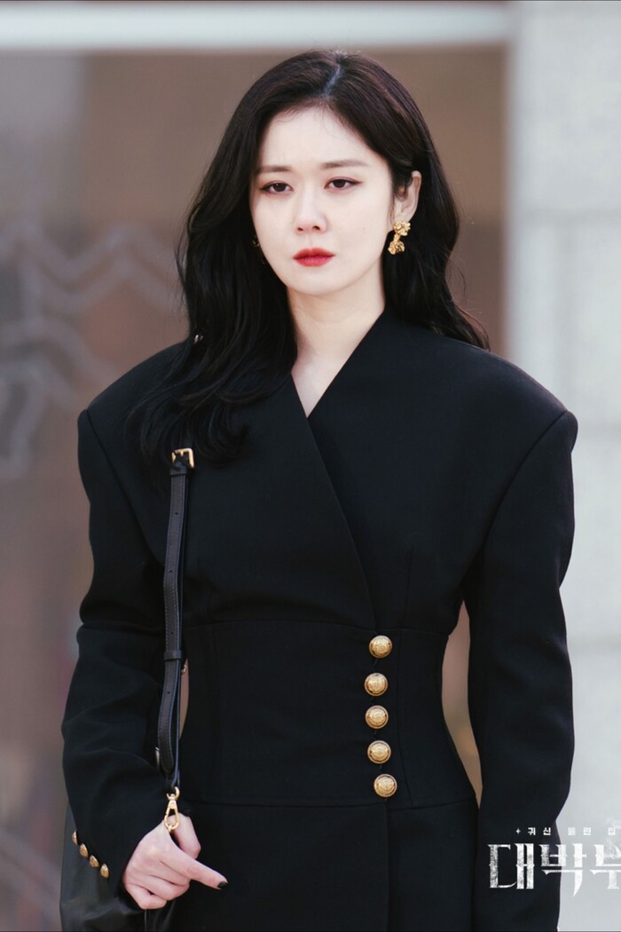 Dù chỉ thường xuyên bó mình trong những trang phục màu đen nhưng nhan sắc rạng ngời và phong thái sang trọng của Jang Na Ra vẫn làm người xem bị hút hồn.